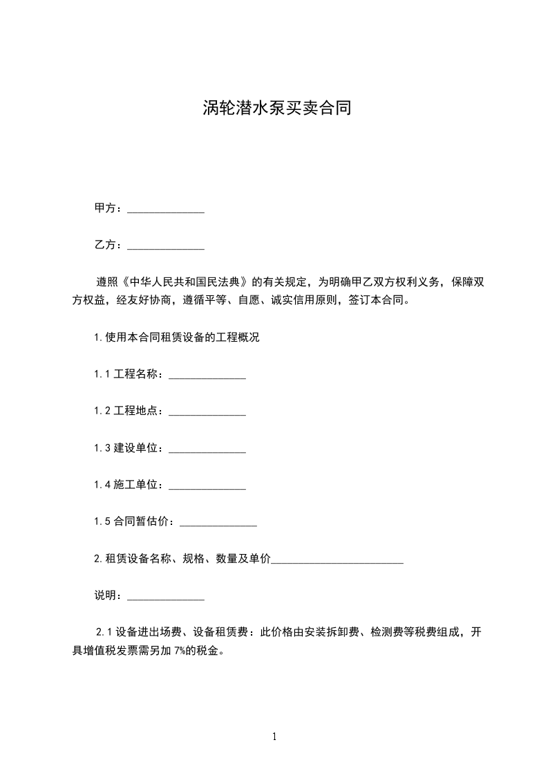 1.使用本合同租赁设备的工程概况