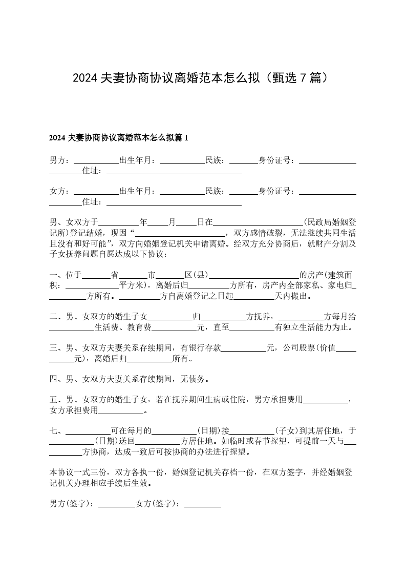 2024夫妻协商协议离婚书如何写篇7