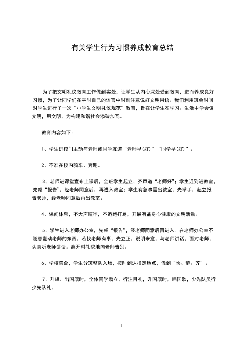 我国著名教育家陶行知先生说:“播种行为,就收获习惯;播种习惯,就收获性格;播种性格,就收获命运。”这一育人哲理道出了培养行为习惯的重要性。叶_先生十分重视少年儿童良好行为习惯的培养。他认为,“我们在学校里受教育,目的在养成习惯,增强能力。我们离开了学校,仍然要从多方面受教育,并且要自我教育,其目的还是在养成习惯,增强能力。”;“习惯越自然越好,能力越增强越好”。良好的行为习惯是促进一个人健康成长的重要条件,是健全人格形成的基础。