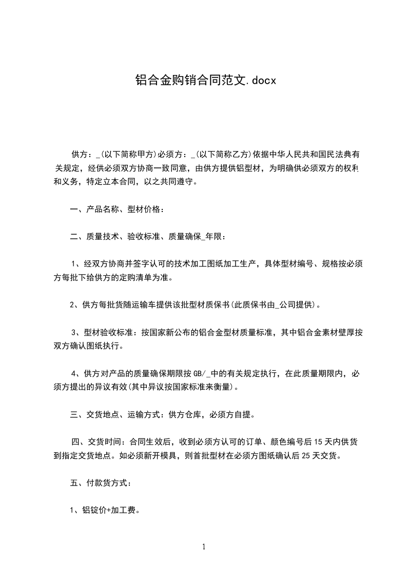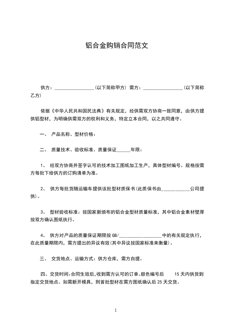 依据《中华人民共和国民法典》有关规定,经供需双方协商一致同意,由供方提供铝型材,为明确供需双方的权利和义务,特定立本合同,以之共同遵守。