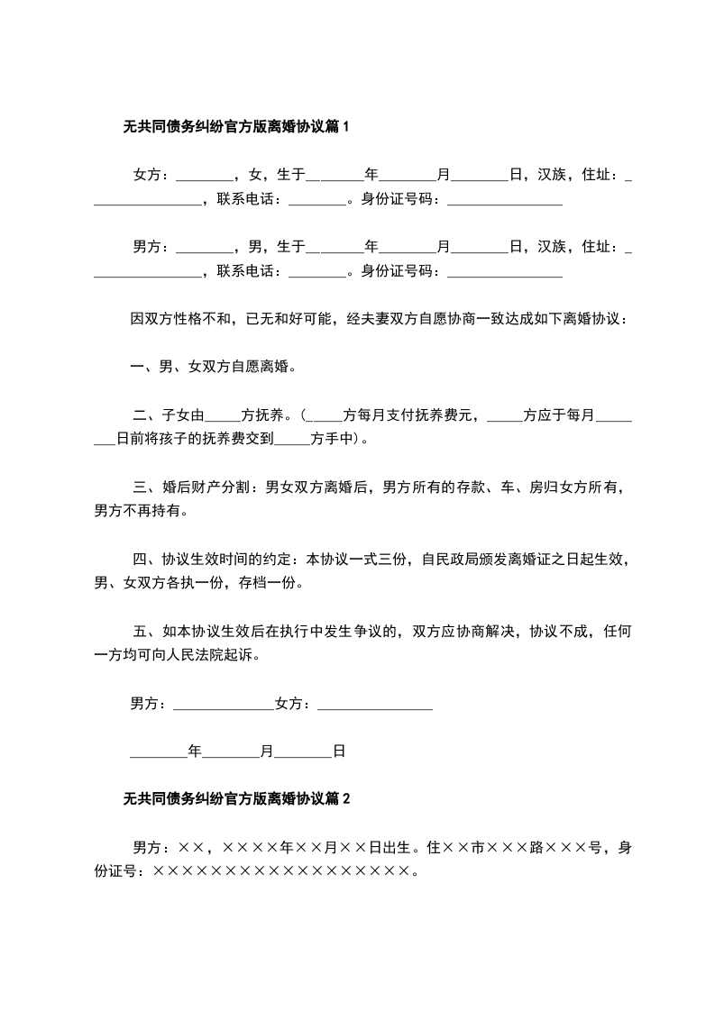 无债务纠纷官方版离婚协议书怎么拟篇4