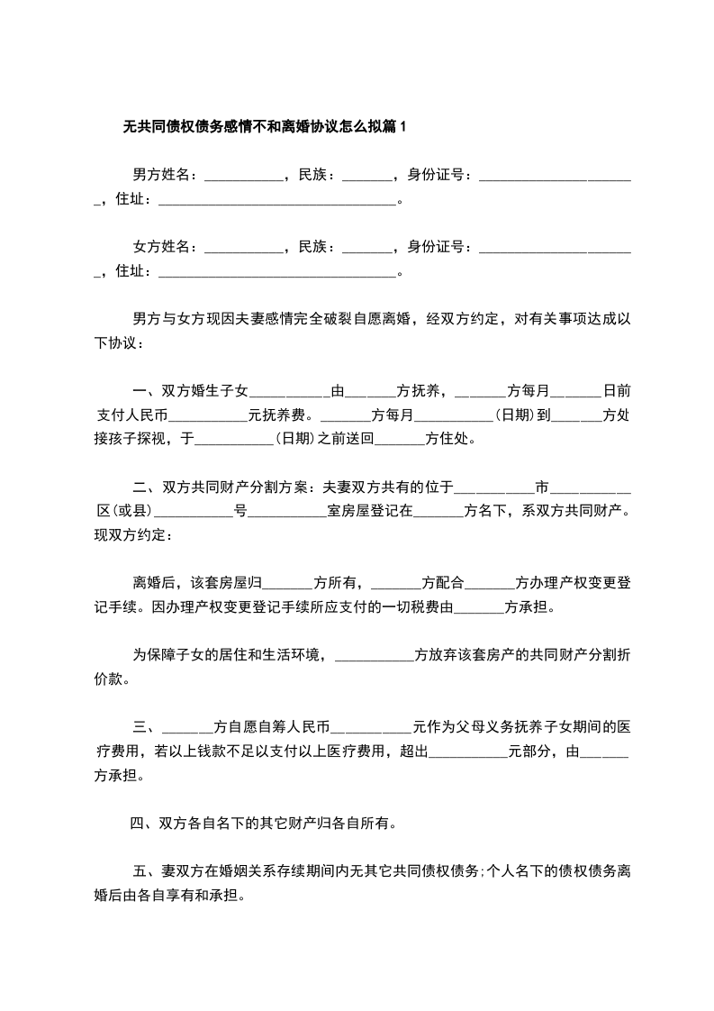 □双方确认在婚姻关系存续期间没有发生任何共同债务,任何一方如对外负有债务的,由负债方自行承担。