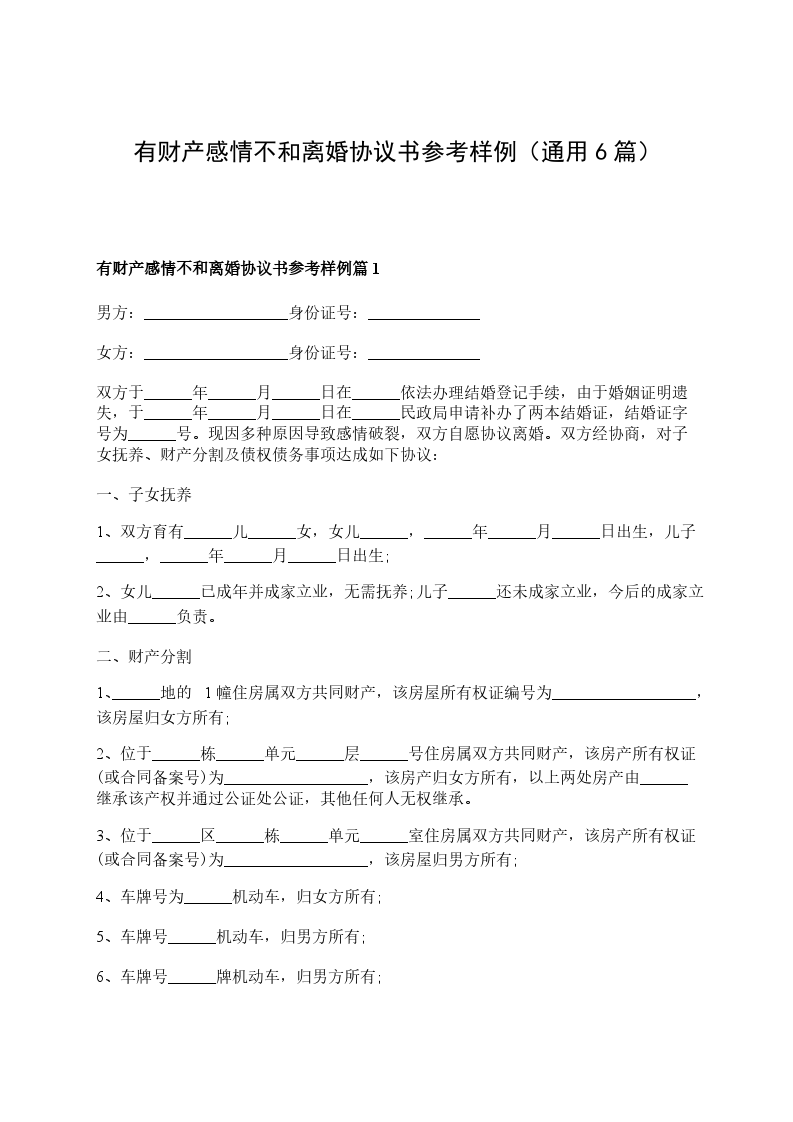 有房产感情不和协议离婚范本怎么写篇6