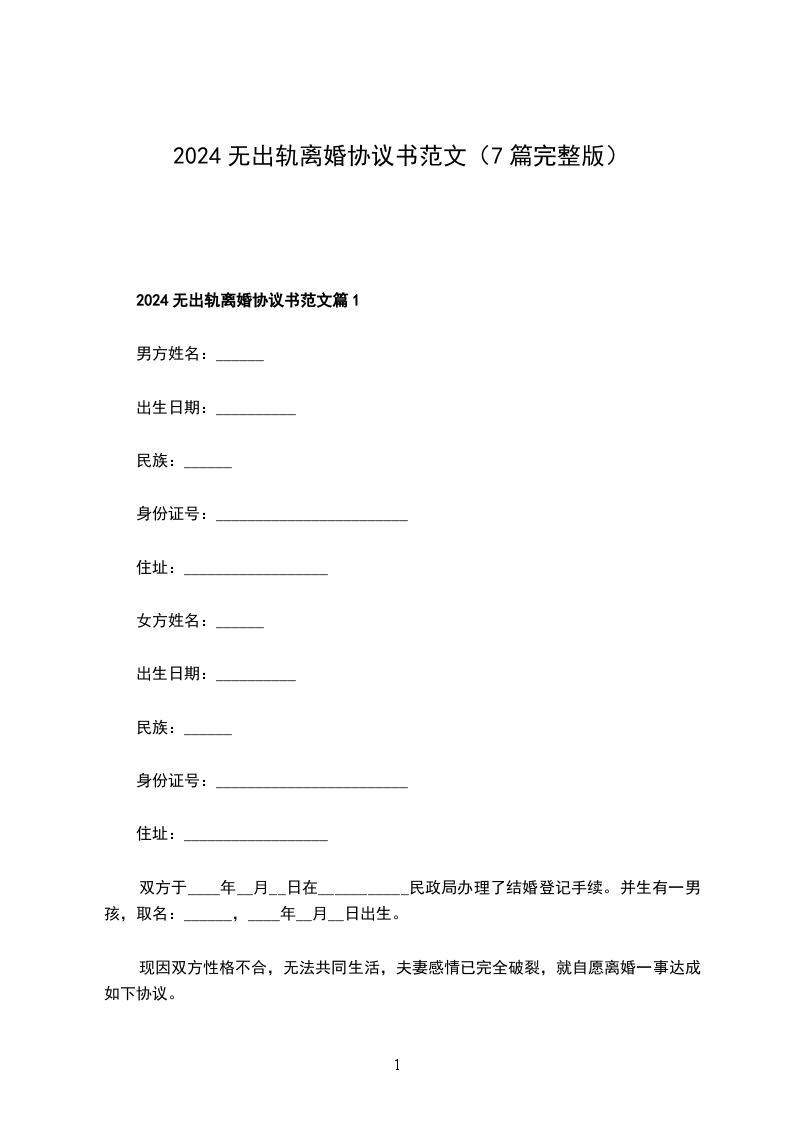 无出轨离婚协议书样本篇1