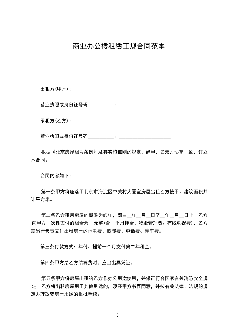 第四条甲、乙双方一致确认,自_________年_________月_________日至_________年_________月_________日该办公用房租金为每平方米_________元/年,年租金分别为_________元,大写:_________和_________元,大写:_________元整;合计_________元,大写:__________________元整。