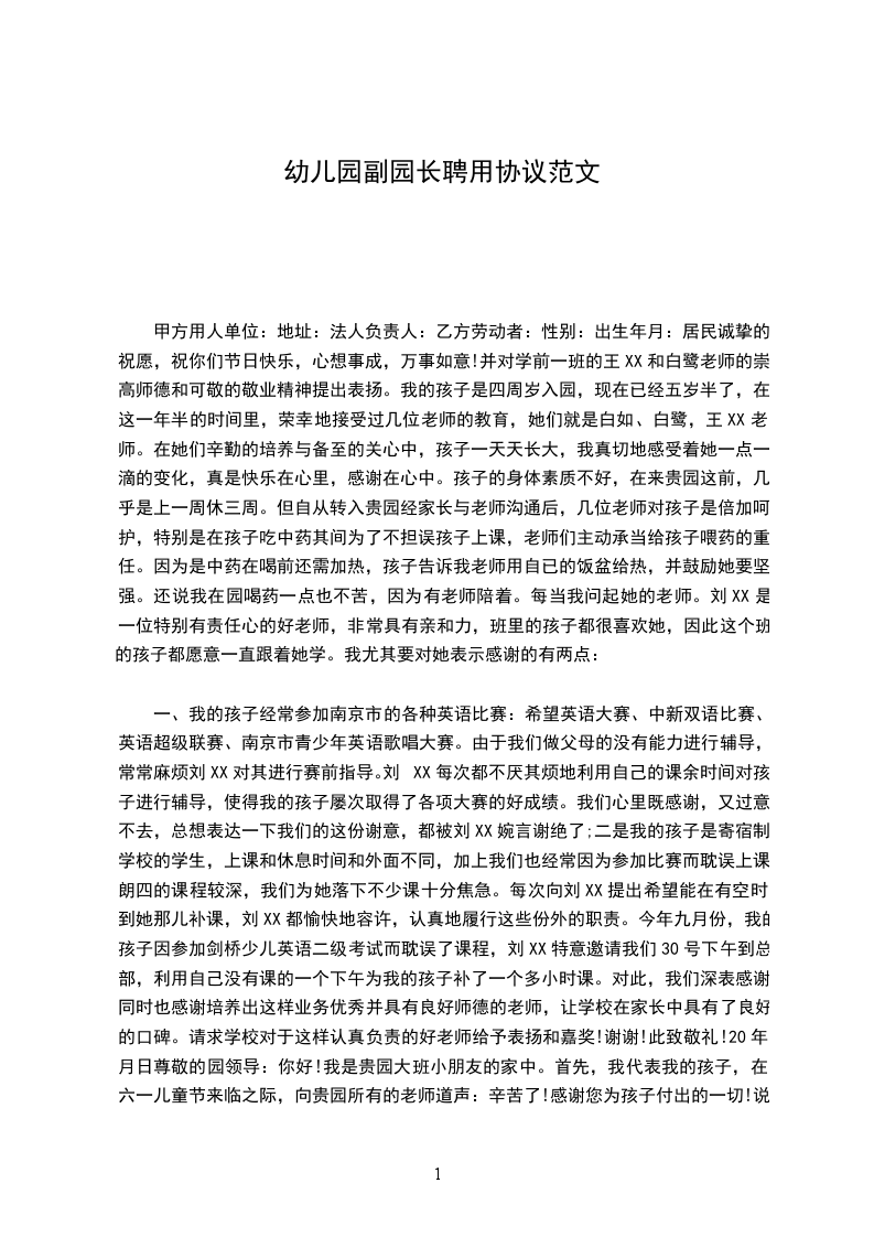 1、乙方患病或非因工负伤,医疗期满后不能从事园长工作。