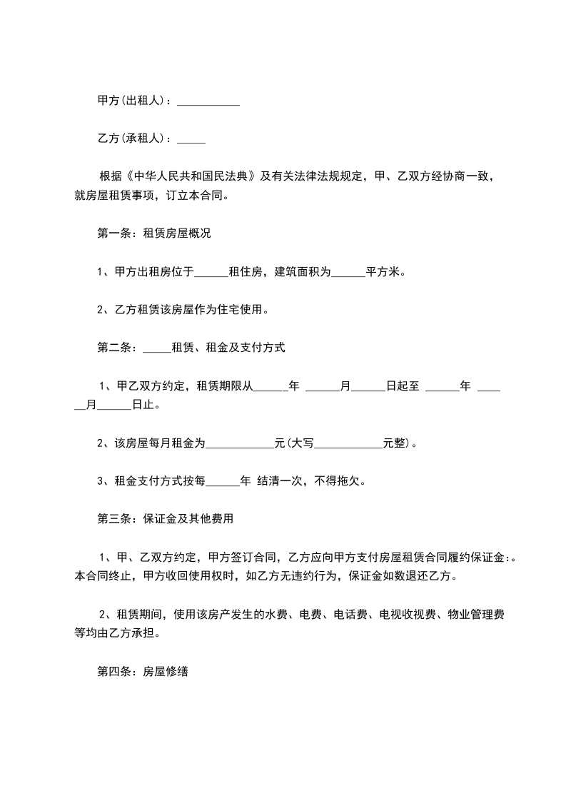 1、甲方出租房位于______租住房,建筑面积为______平方米。