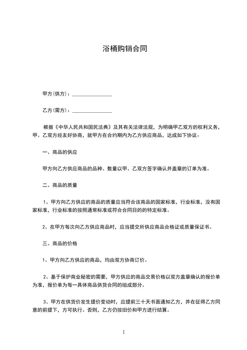 浴桶购销合同