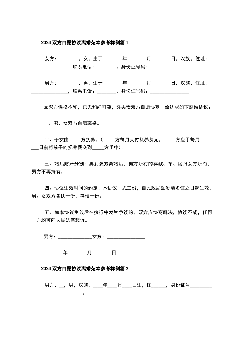 2024年自愿离婚协议参考样式篇10