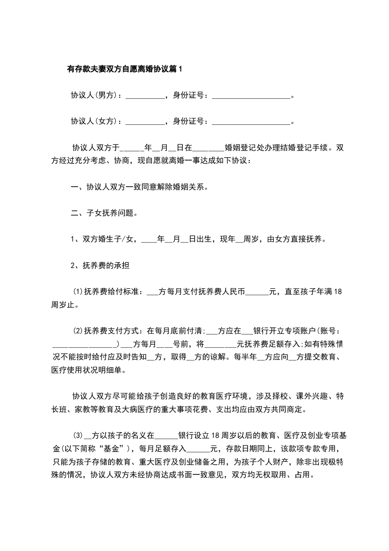 2、双方婚后的共同存款人民币____万元,双方同意归__方所有。