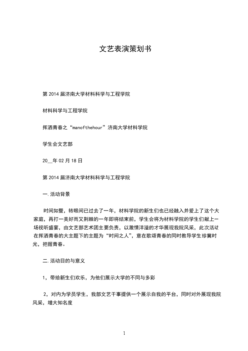 时间如暨,转眼间已过去了一年,材料学院的新生们也已经融入并爱上了这个大家庭,再打一美好而又荆棘的一年即将结束前,学生会将为材料学院的学生们献上一场视听盛宴,由文艺部艺术团主要负责,以激情洋溢的才华展现我院风采,此次活动在挥洒青春的大主题下的主题为“时间之人”,意在歌颂青春的同时教导学生珍冀时光,把握青春。