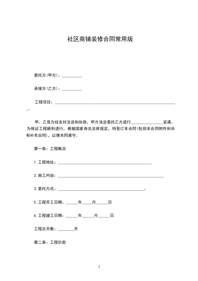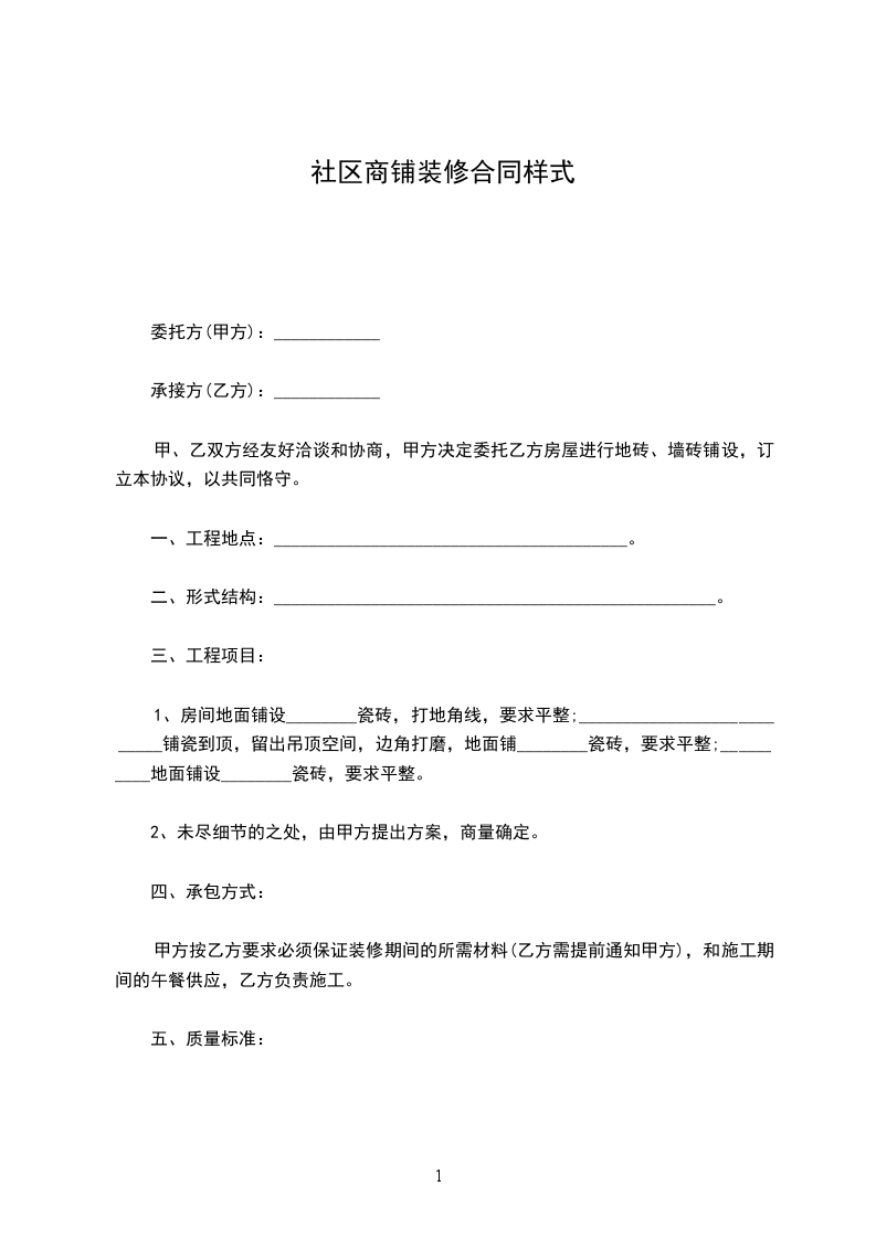 社区商铺装修合同样式