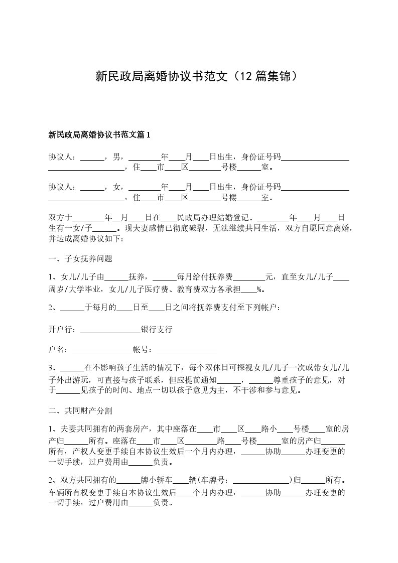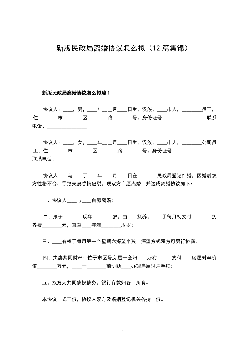 有房民政局离婚协议怎么写篇12
