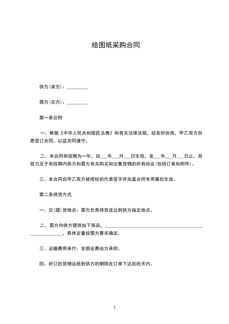 绘图纸采购合同