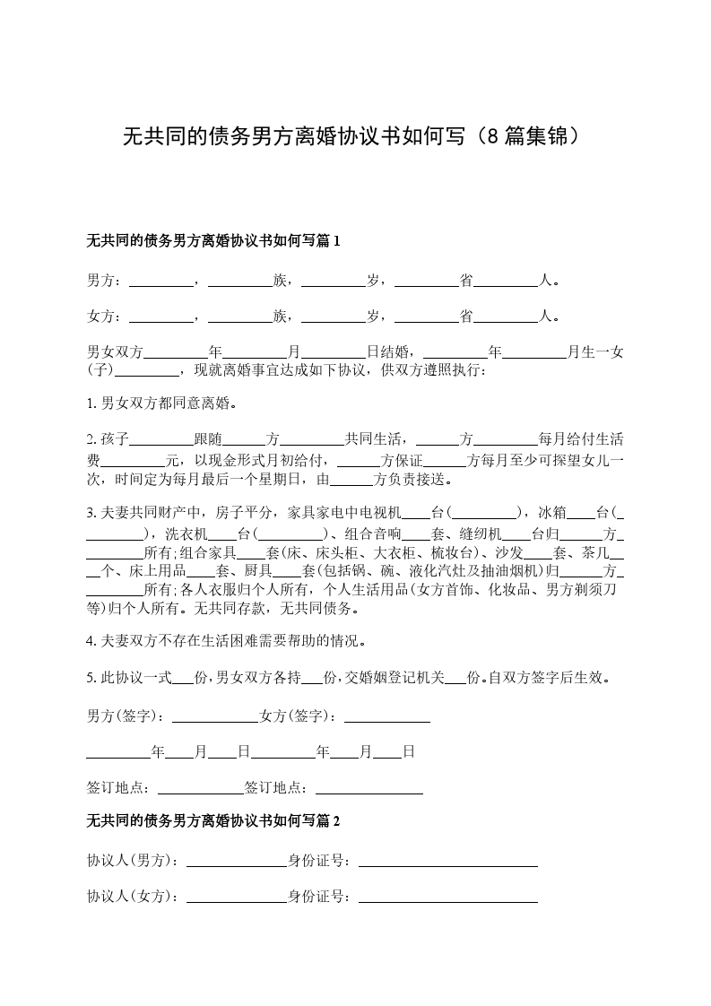 (1)男女双方确认在婚姻关系存续期间无共同债务。