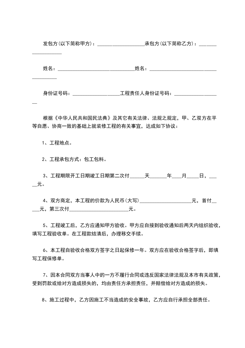 根据《中华人民共和国民法典》及其它有关法律、法规之规定,甲、乙双方在平等自愿、协商一致的基础上就装修工程的有关事宜,达成如下协议: