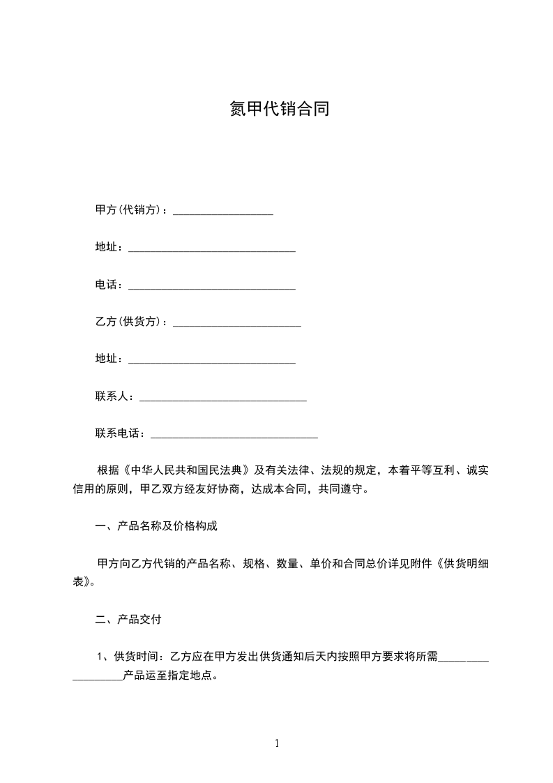 氮甲供货合同