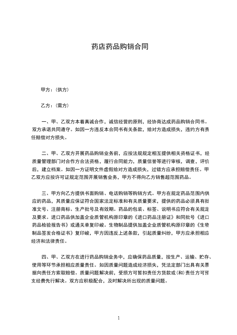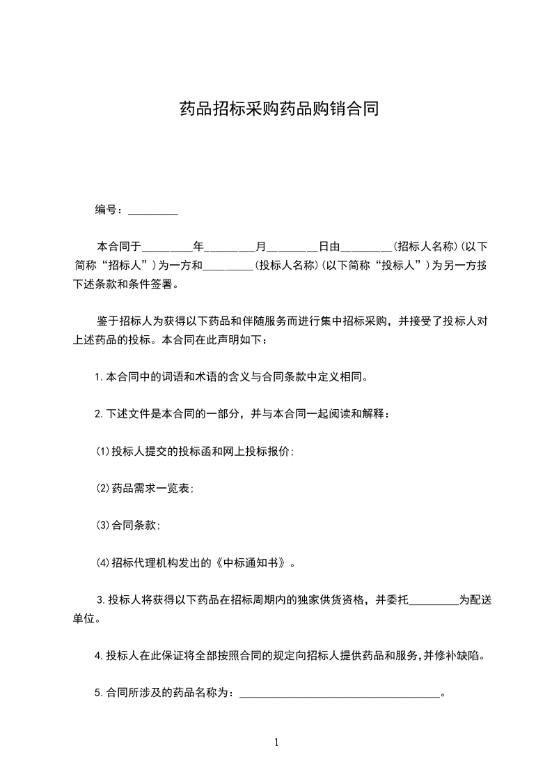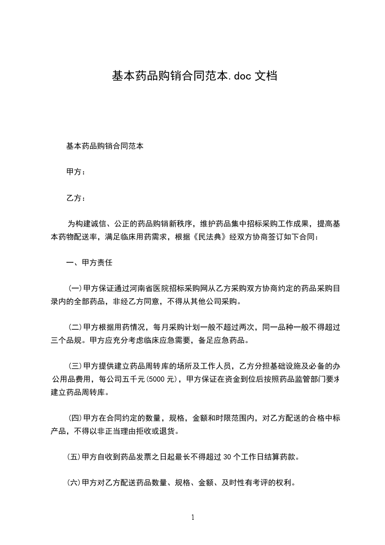 为构建诚信、公正的药品购销新秩序,维护药品集中招标采购工作成果,提高基本药物配送率,满足临床用药需求,根据《民法典》经双方协商签订如下合同: