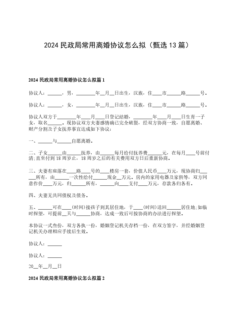 2024民政局协议离婚书参考格式篇13