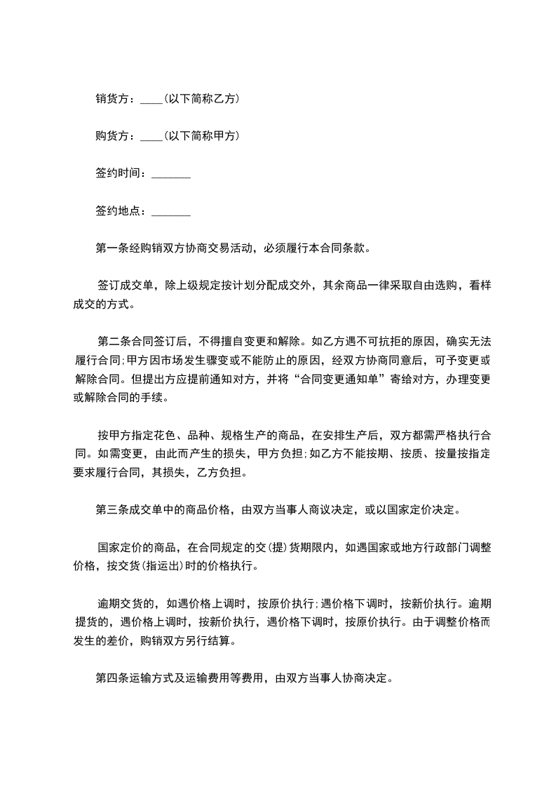 七、交货地点:_______________________________________________________________。运费由供方负担。运输过程中货物毁损、灭失等各种风险均由供方承担责任。