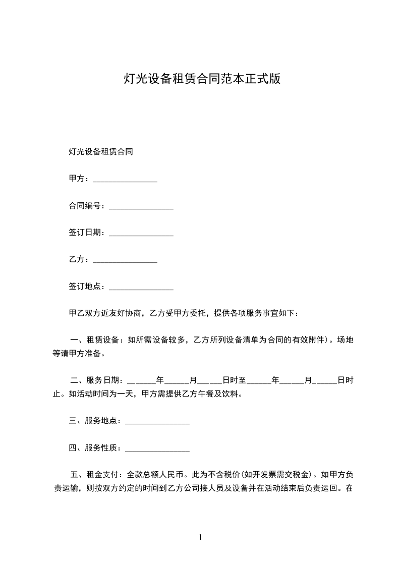 灯光设备租赁合同