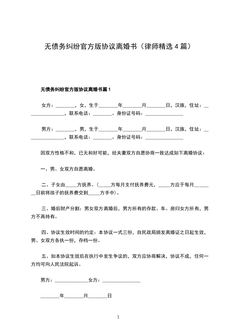 无债务纠纷官方版协议离婚书篇3