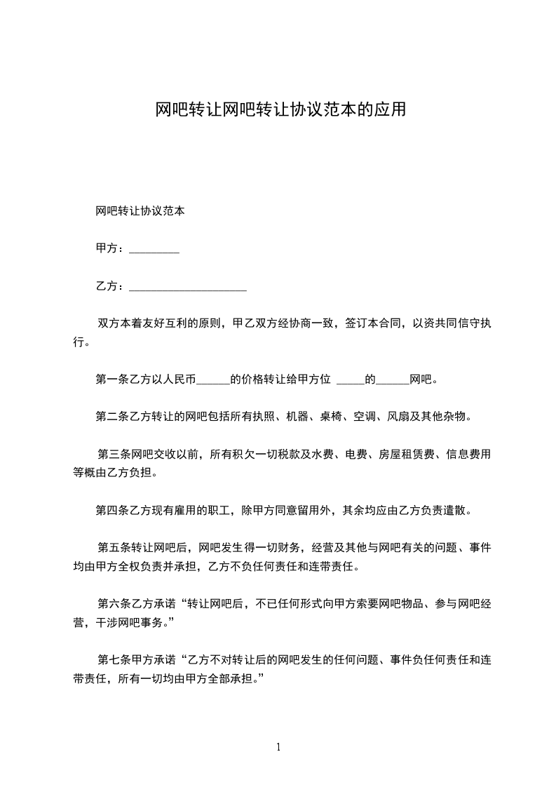 网吧转让协议范本