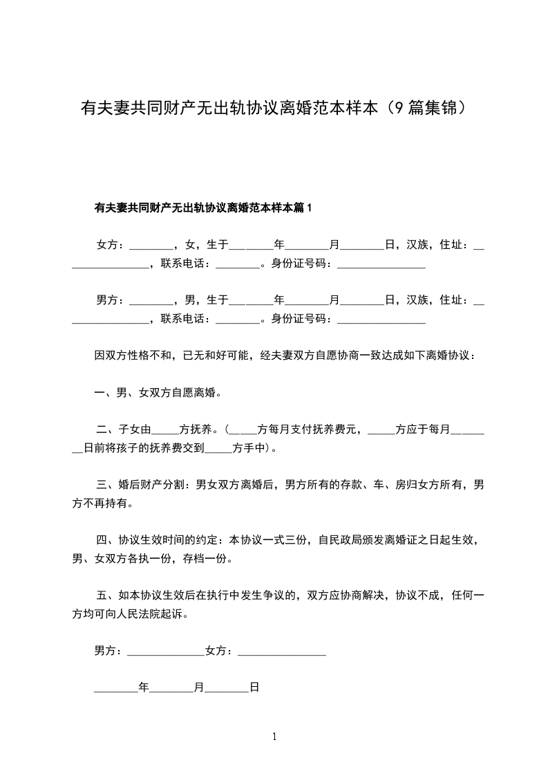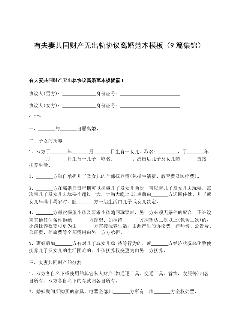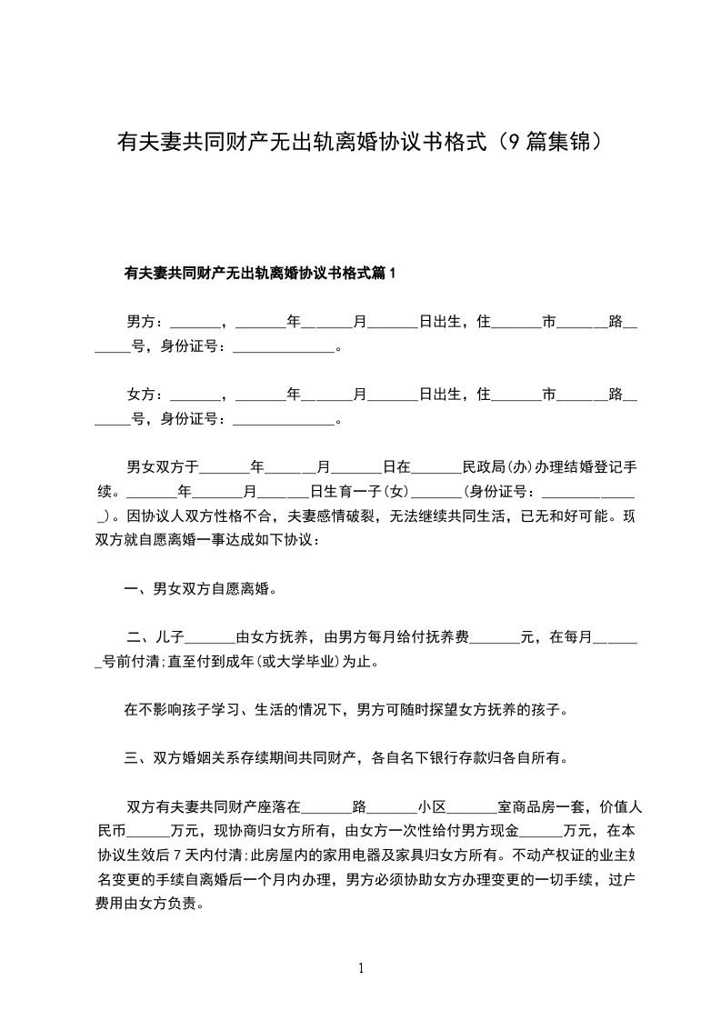 有夫妻共同财产无出轨离婚协议书格式篇9
