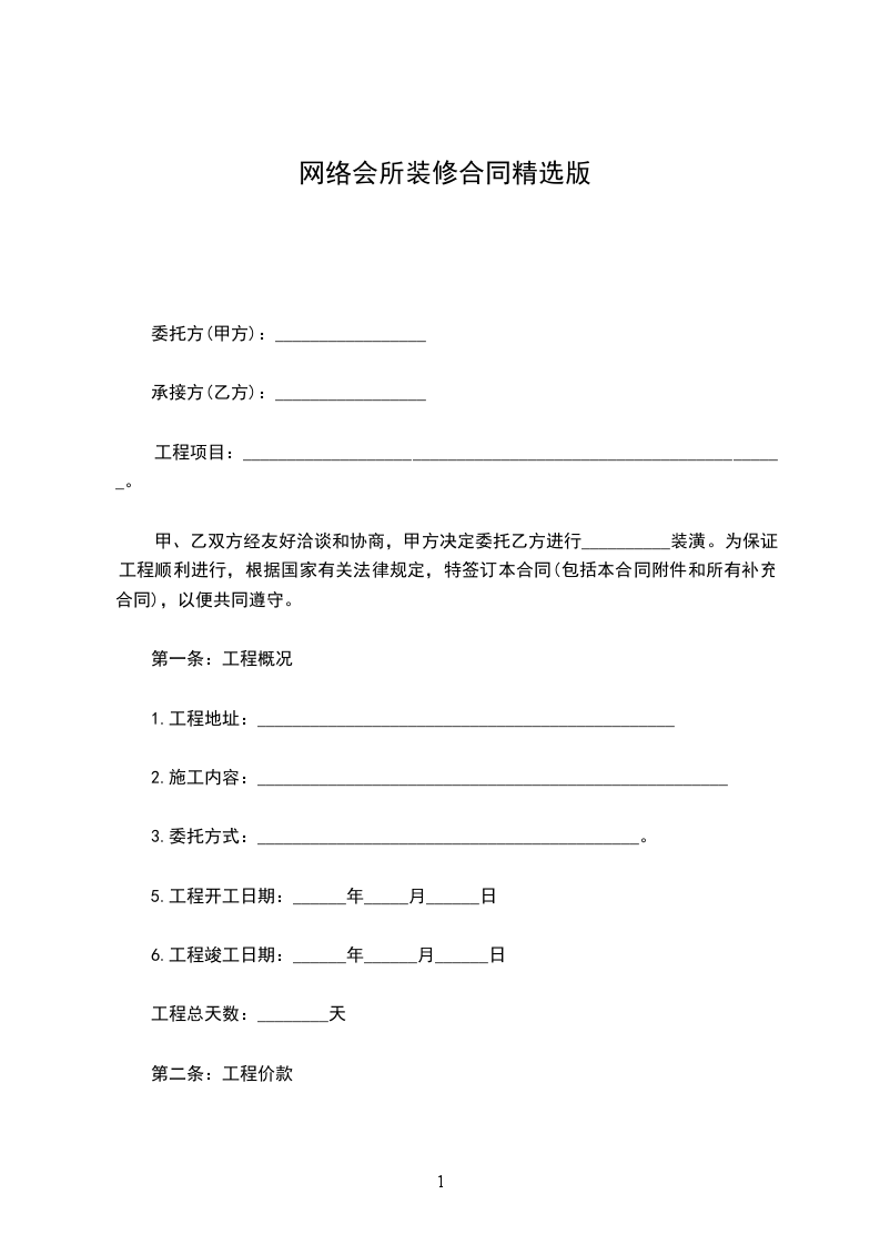工程价款(金额大写)___________________元