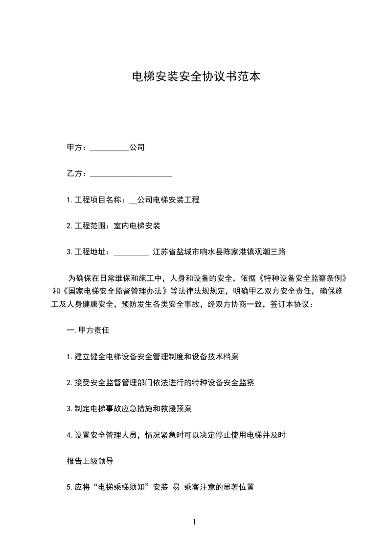 为确保在日常维保和施工中,人身和设备的安全,依据《特种设备安全监察条例》和《国家电梯安全监督管理办法》等法律法规规定,明确甲乙双方安全责任,确保施工及人身健康安全,预防发生各类安全事故,经双方协商一致,签订本协议: