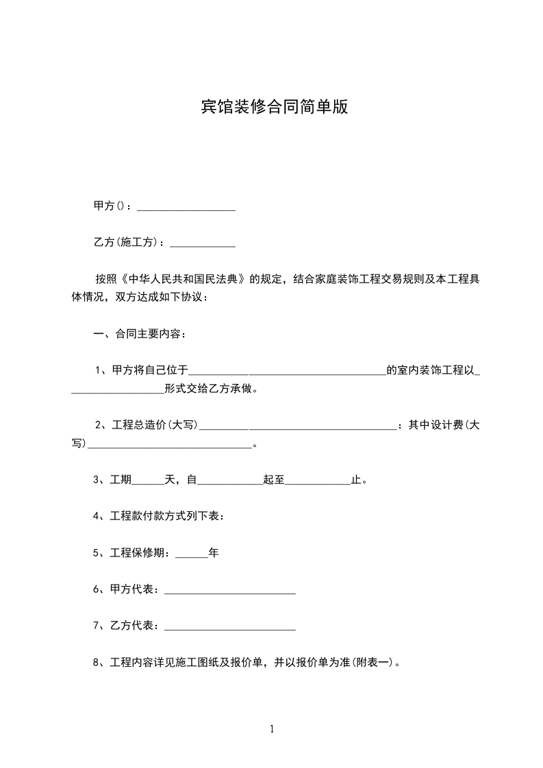 四、承包方式:包工完成装修,装修材料由甲方的自己购买。