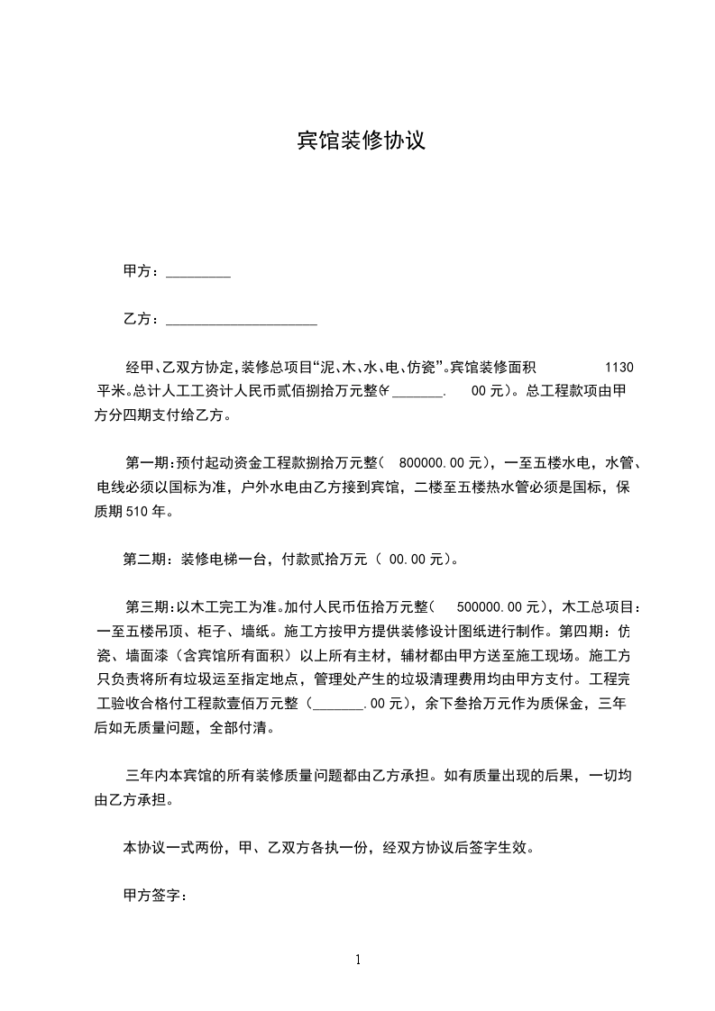 七、付款方式:为确保工程质量,暂扣__________________元押金,_______年_______月_______日至_______年_______月_______日内无任何问题,将全额返还乙方。工程完工后,经甲方验收,如符合以上施工项目和设计要求,三天内付清乙方人工费,