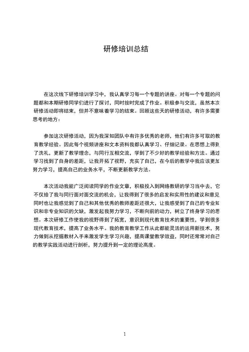 参加这次研修活动,因为我深知团队中有许多优秀的老师,他们有许多可取的教育教学经验。因此每个视频讲座和文本资料我都认真学习、仔细记录。在思想上得到了洗礼,更新了教学理念,与同行互相交流,学到了不少好的教学经验和方法。通过学习找到了自身的差距,让我开拓了视野,充实了自己,在今后的教学中我应该更加努力学习,提高自己的业务水平,不断更新教学方法。