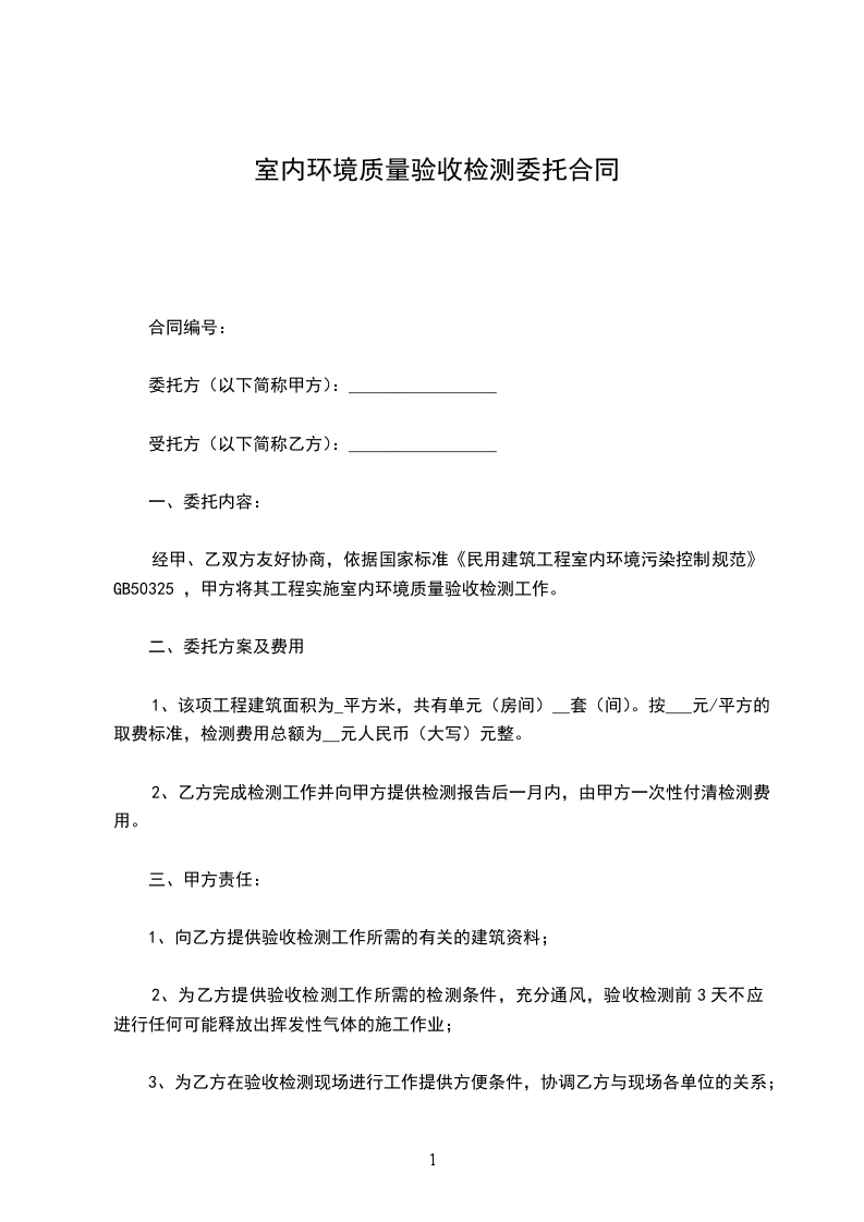 经甲、乙双方友好协商,依据国家标准《民用建筑工程室内环境污染控制规范》GB50325 ,甲方将其工程实施室内环境质量验收检测工作。