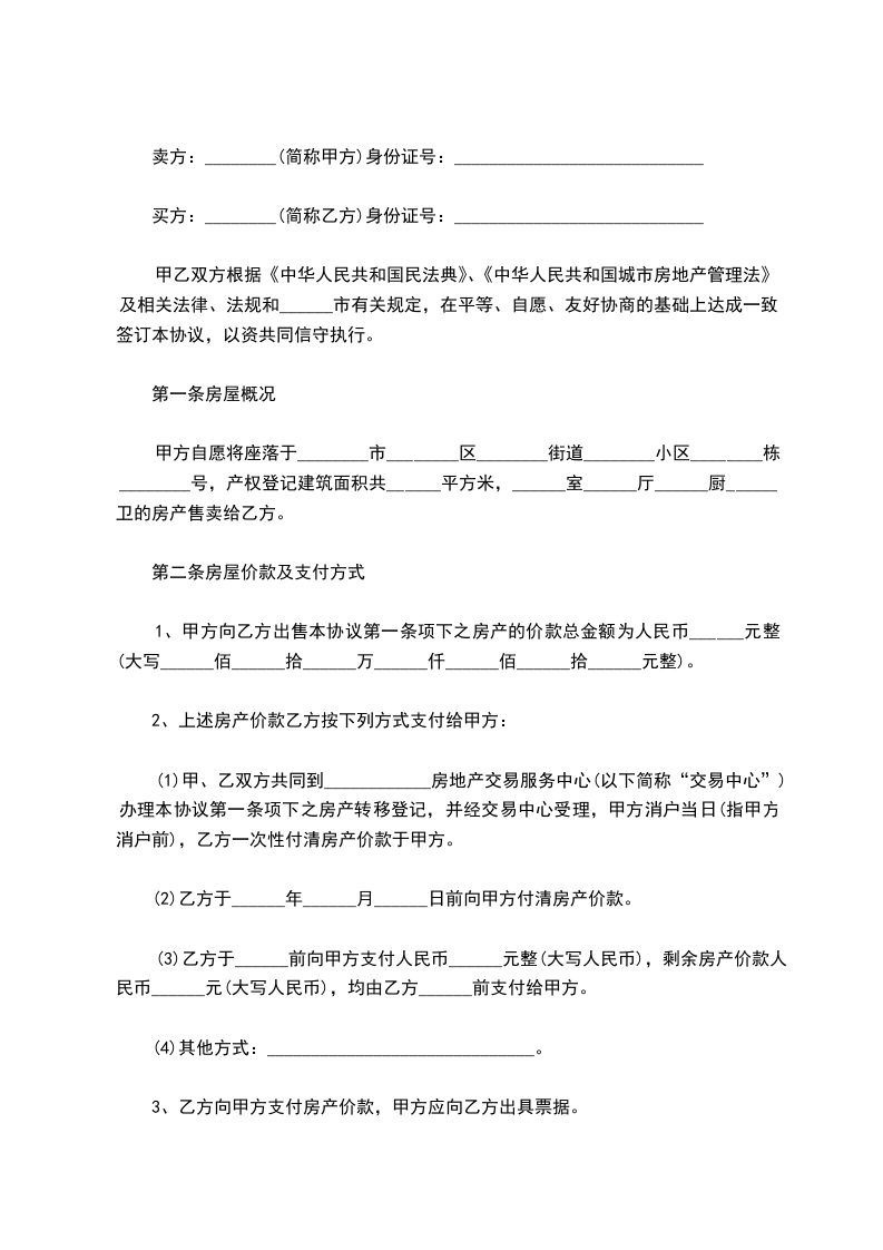 1、甲方向乙方出售本协议第一条项下之房产的价款总金额为人民币______元整(大写______佰______拾______万______仟______佰______拾______元整)。