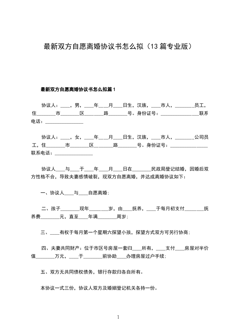 双方合法办理结婚登记,现自愿离婚。经协商一致,达成如下: