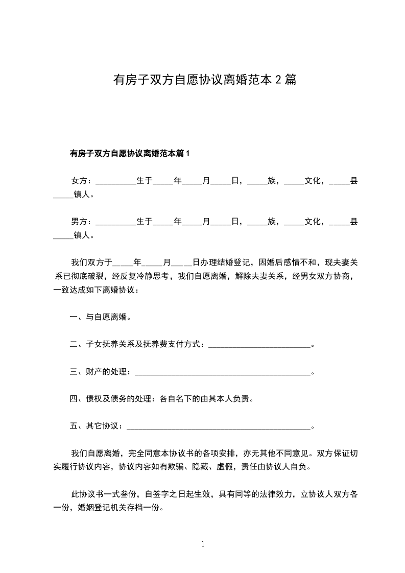一、男女双方自愿离婚。