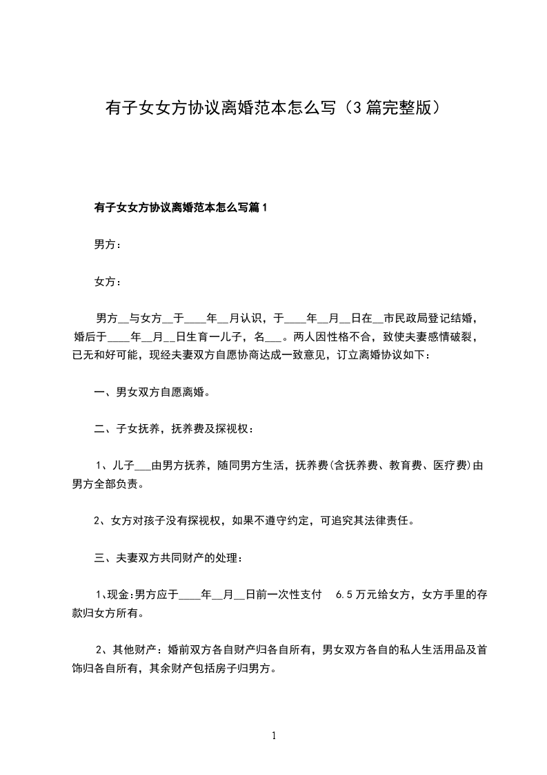 新版女方协议离婚范本参考样本篇1