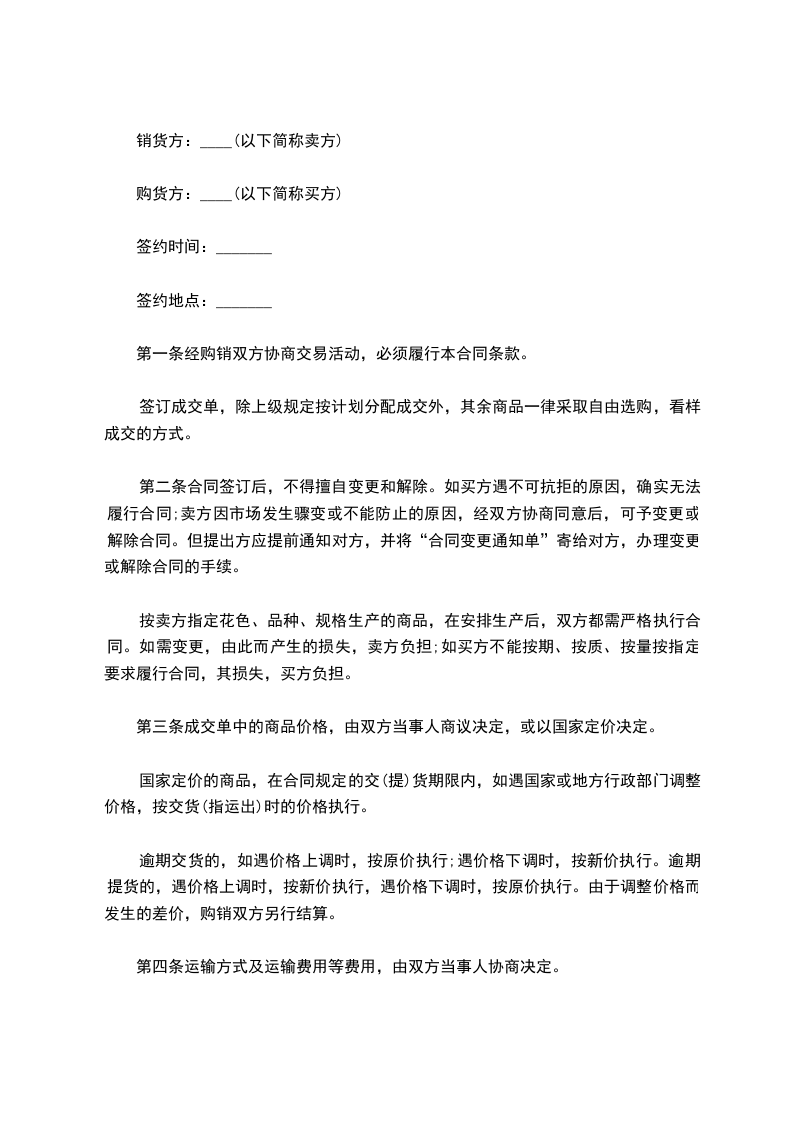 签订成交单,除上级规定按计划分配成交外,其余商品一律采取自由选购,看样成交的方式。
