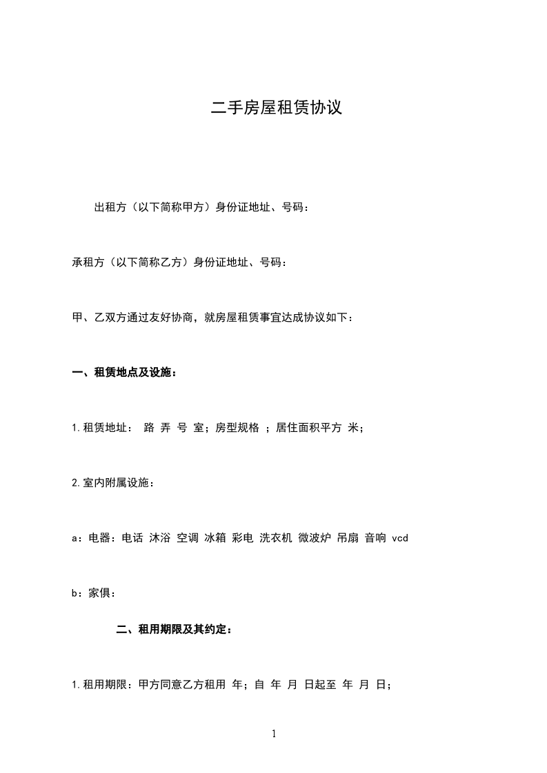 1.租赁地址: 路 弄 号 室;房型规格 ;居住面积平方 米;