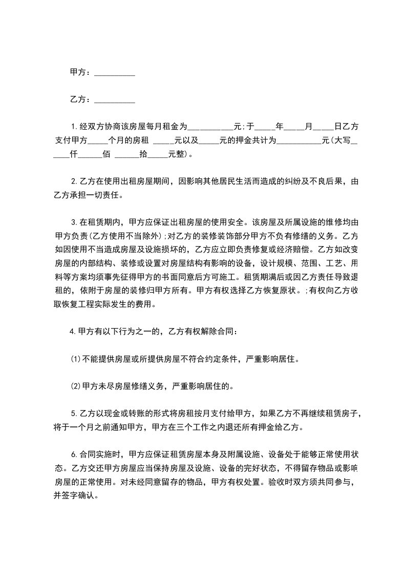 6.乙方入住该物业应保持周围环境整洁做好防火防盗工作,如发生事故乙方应负全部责任;