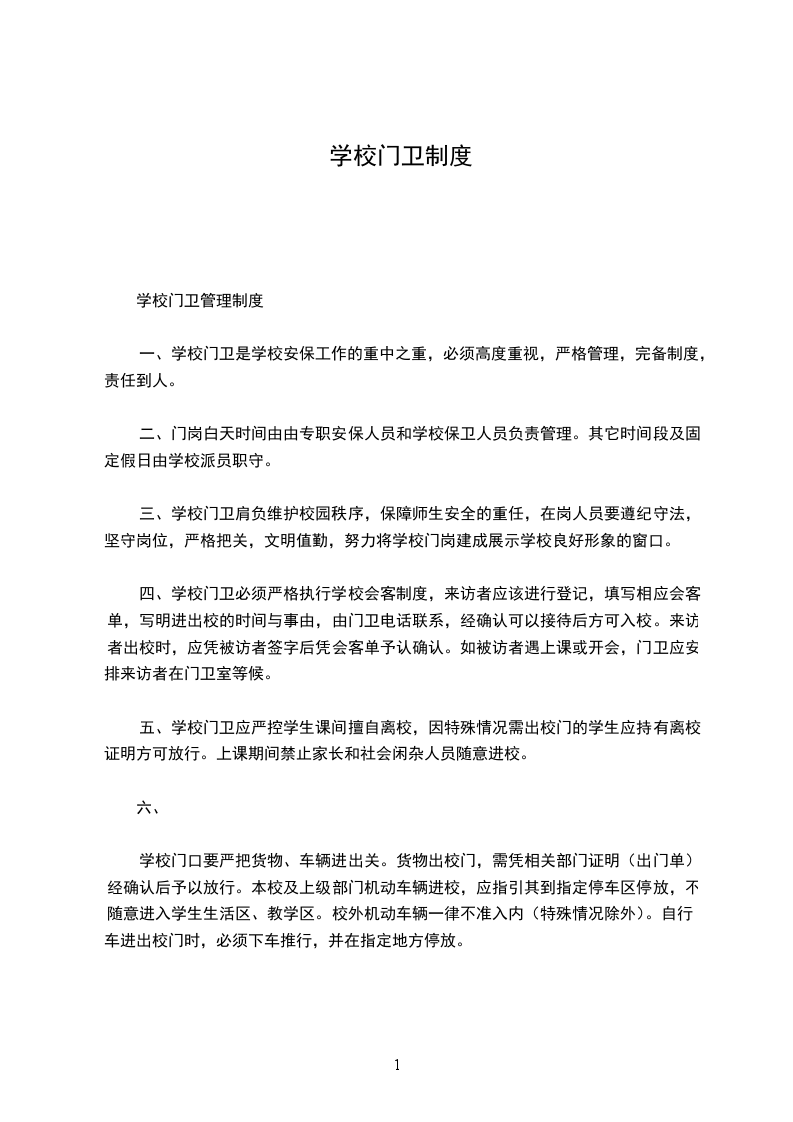 2、学校大门正常情况下处于关闭状态,除上级机关来校检查和学校工程建设的机动车辆确需进入学校适时敞开外,其他任何情况下不得开放大门,认真做好工作时段校内的保卫工作,特别是午间和晚学后的安保。