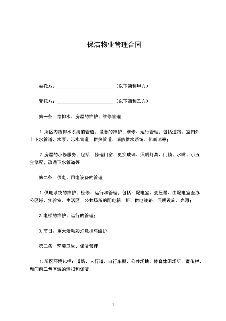 1、保洁形式为全日制用工形式,即为日常保洁。