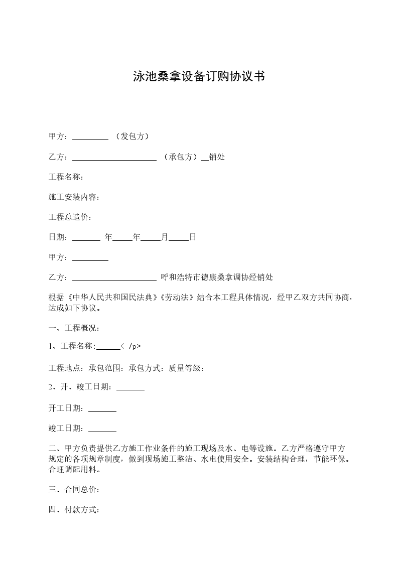 乙方:_____________________ 呼和浩特市德康桑拿调协经销处