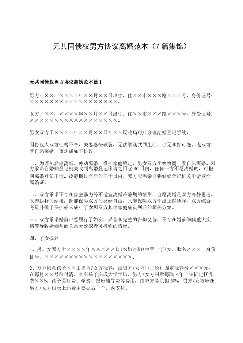 男方:___,男,汉族, 年 月 日生,住__市___街___号,身份证号码:__________________