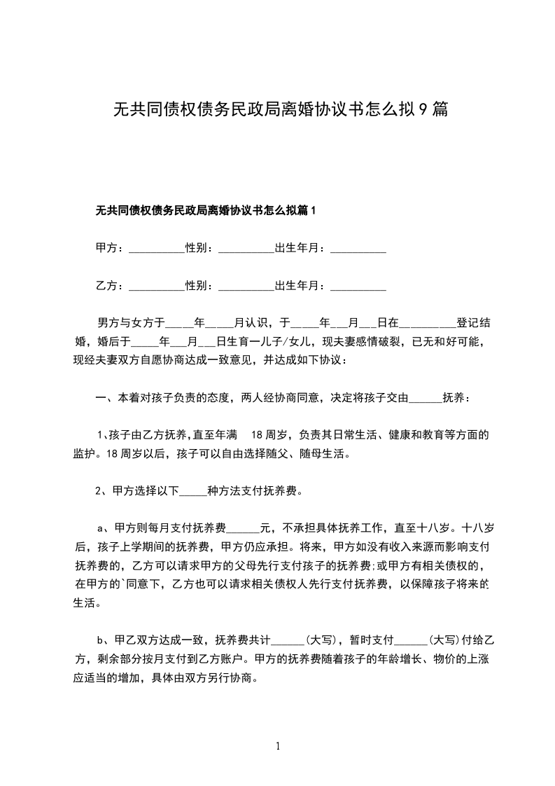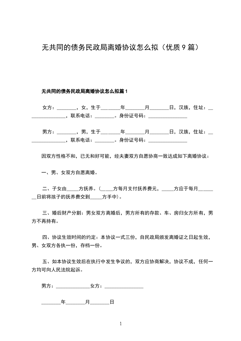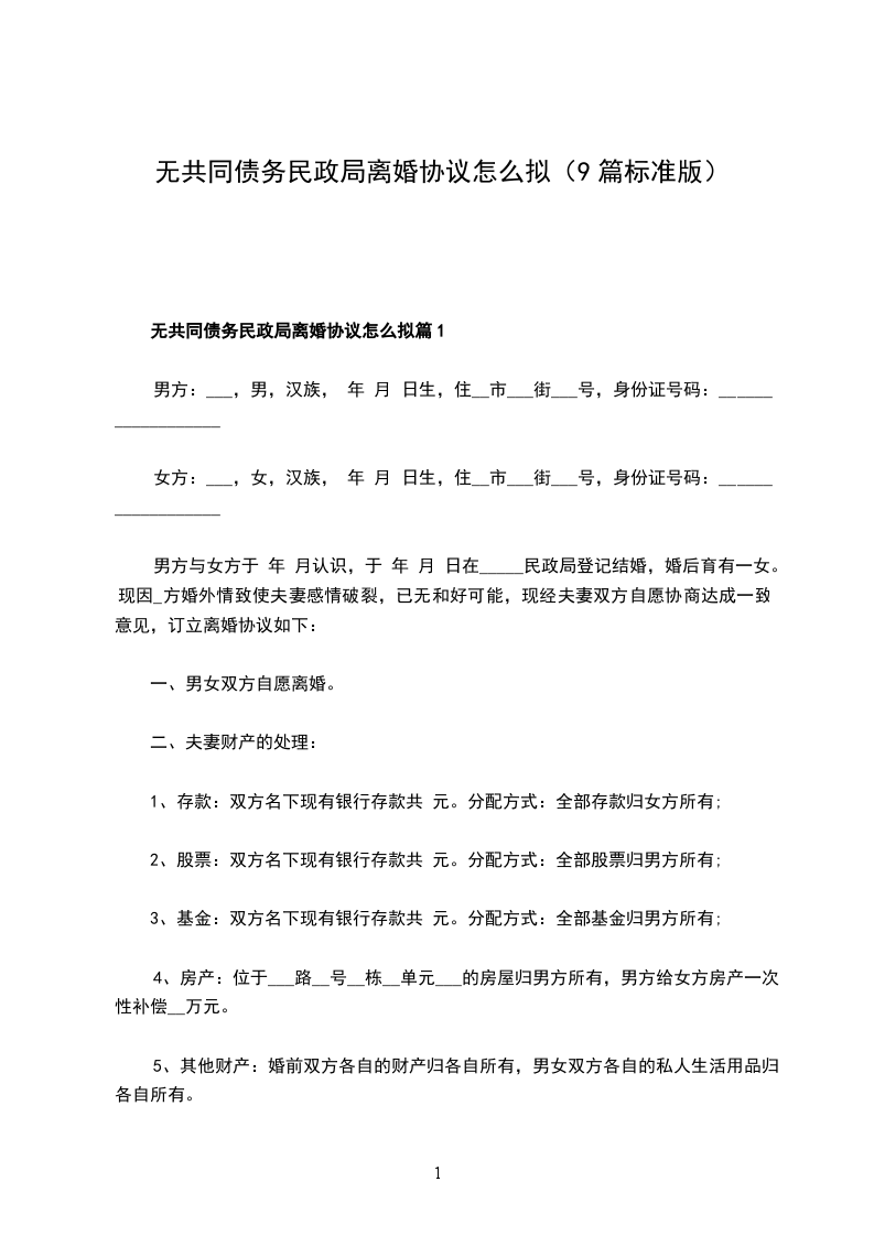 1、甲乙双方确认在婚姻关系存续期间无发生的共同债务。