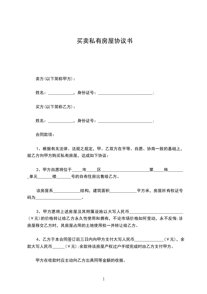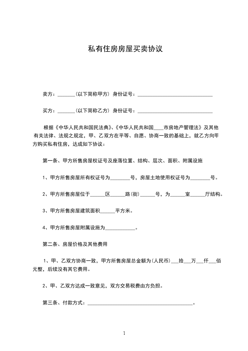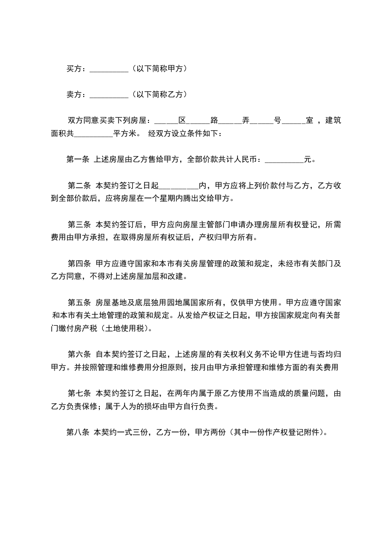 第一条 上述房屋由乙方售给甲方,全部价款共计人民币:__________元。