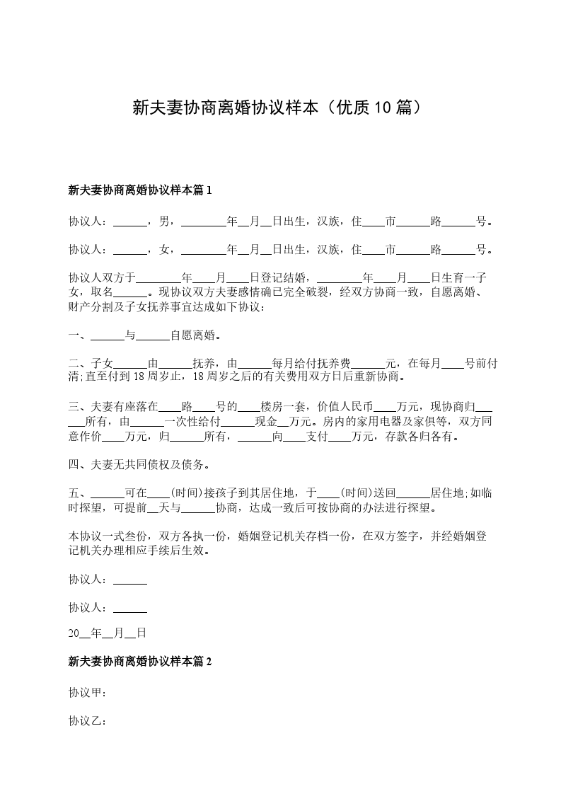 十、本协议一式_____份,双方各执_____份,民政局存档_____份。