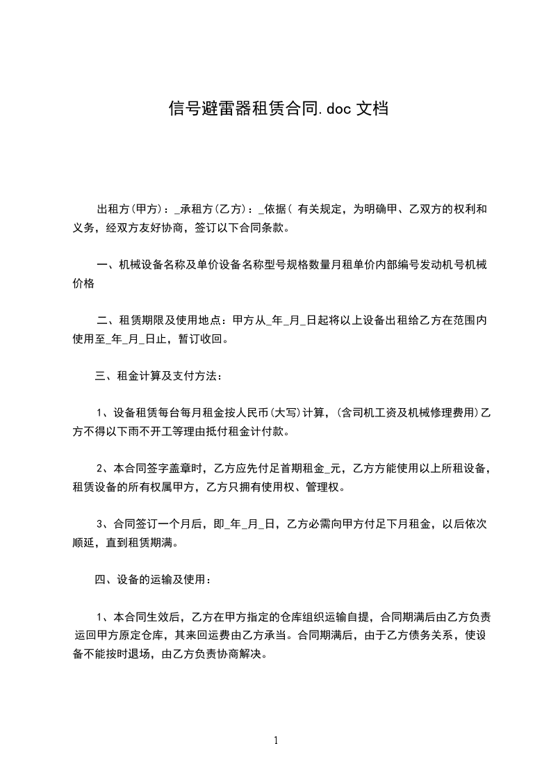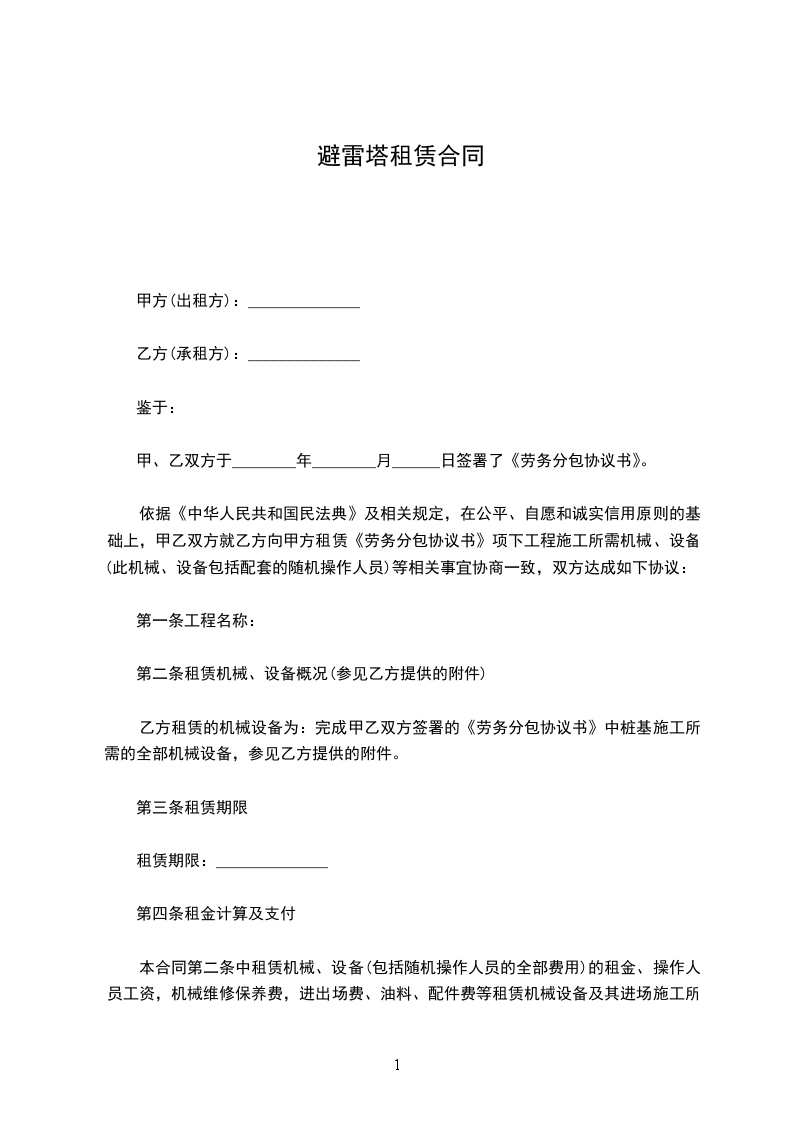 第六条租赁机械设备交接与验收