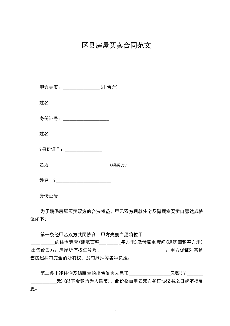 区县房屋买卖合同范文